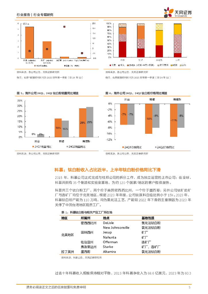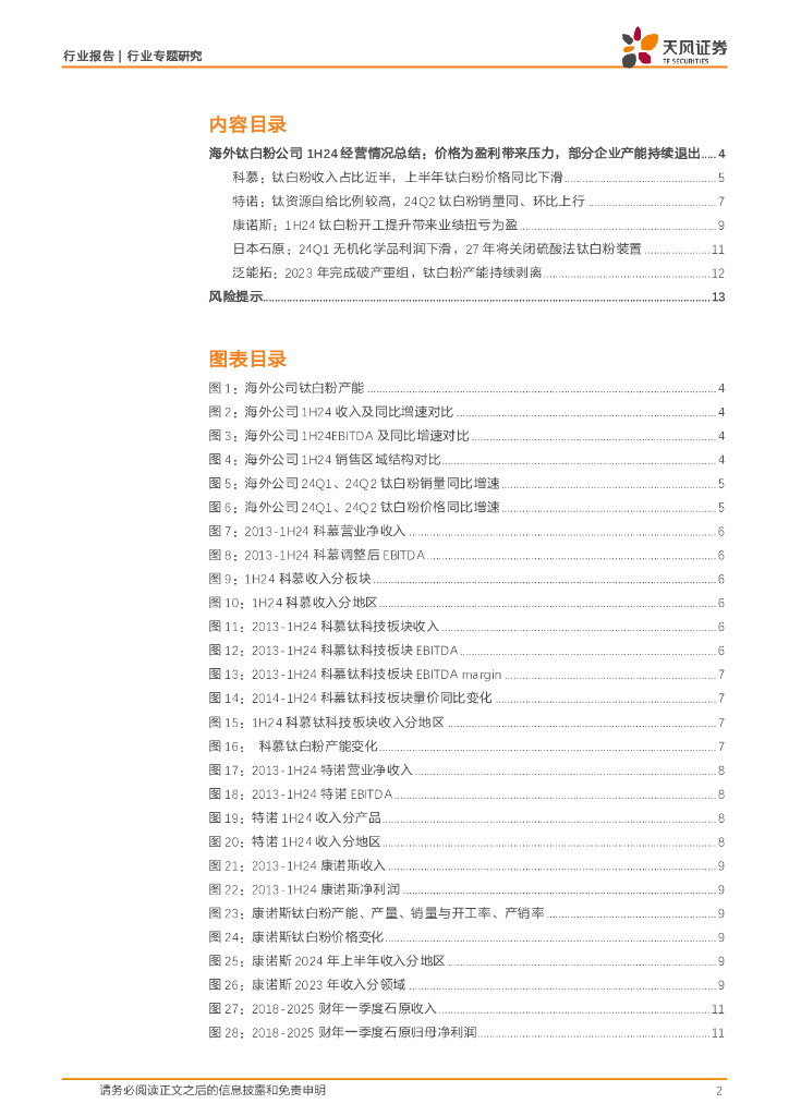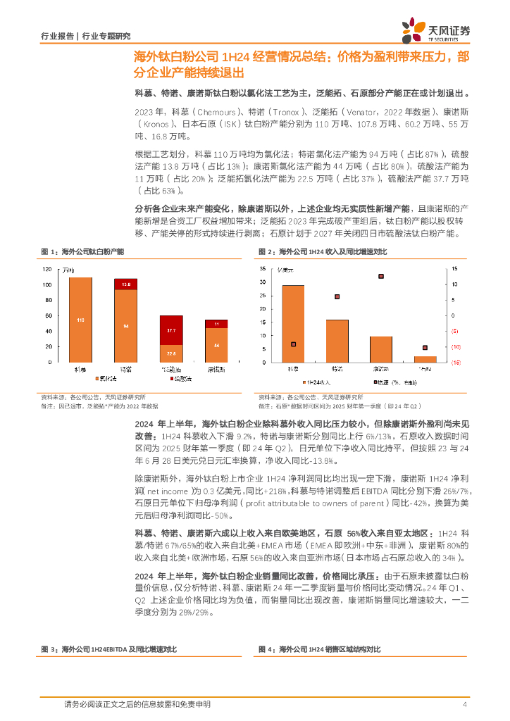 天风证券:基础化工行业专题研究:2024年上半年海外钛白粉企业经营情况.pdf