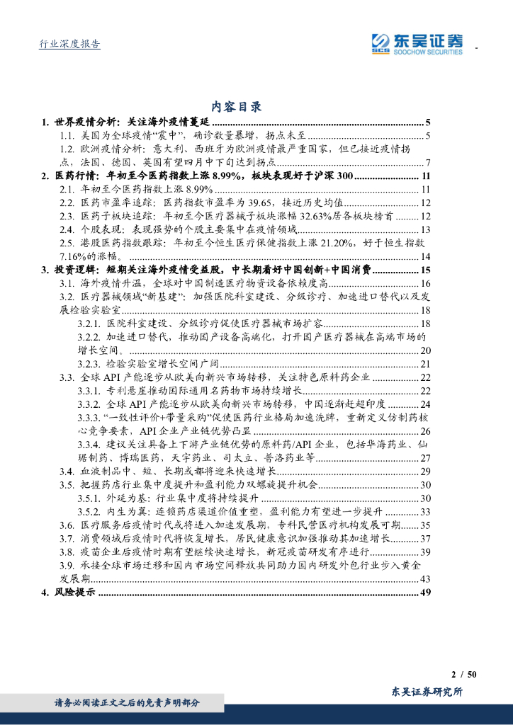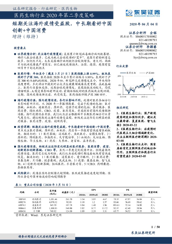 东吴证券:医药生物行业2020年第二季度策略:短期关注海外疫情受益股,中长期看好中国创新+中国消费.pdf
