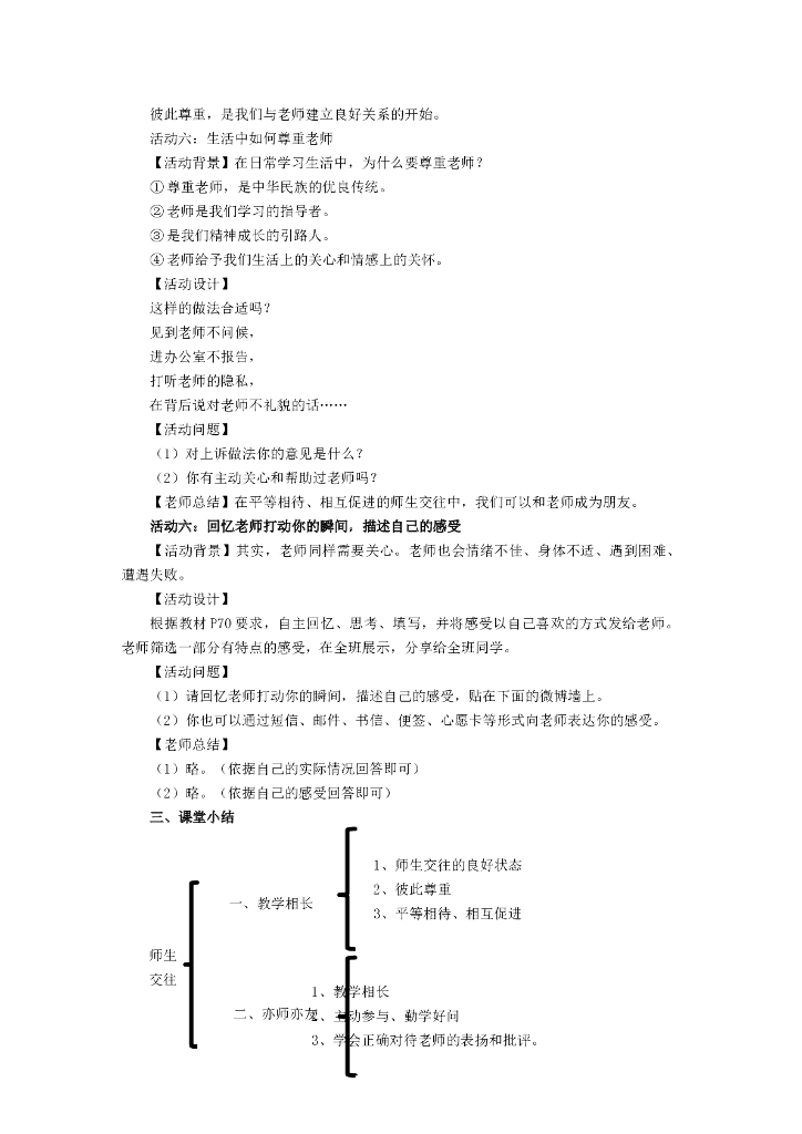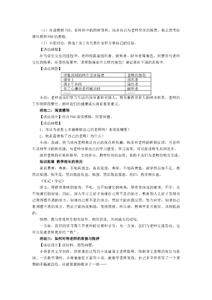 七年级上册 初中道德与法治6.2《师生交往》教学设计1.doc