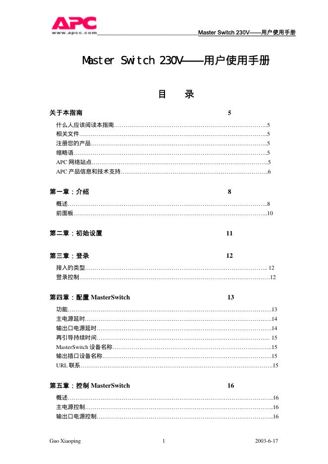 APC Master Switch 230V 用户使用手册.pdf