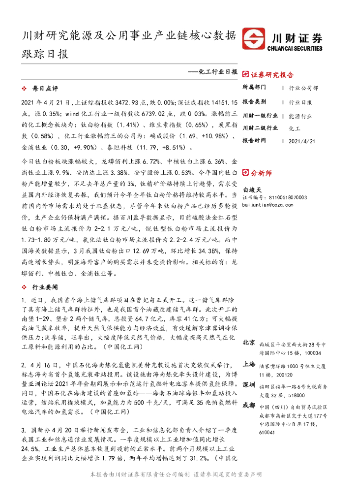 川财证券:化工行业日报:川财研究能源及公用事业产业链核心数据跟踪日报.pdf