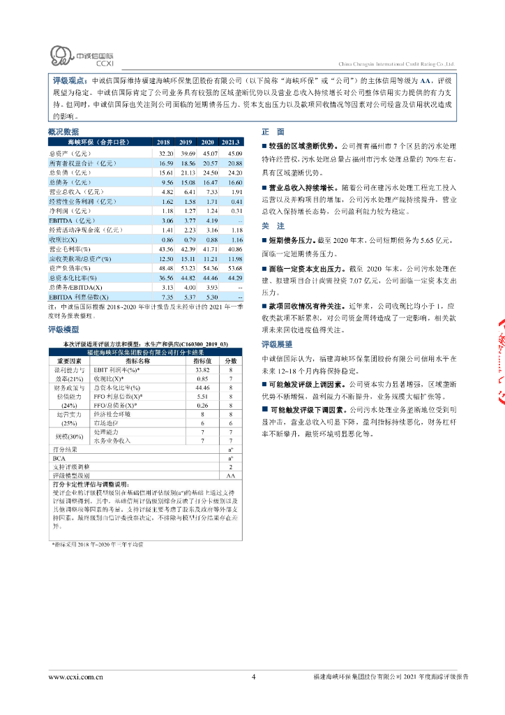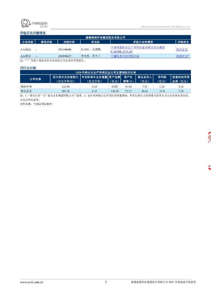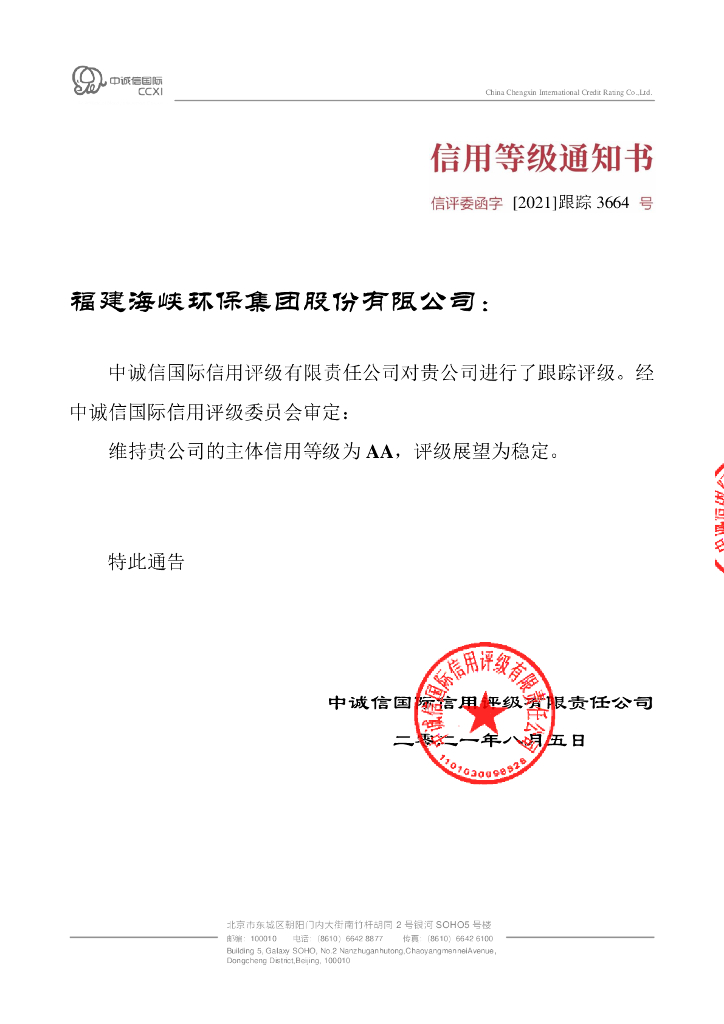 中诚信:福建海峡环保集团股份有限公司2021年度跟踪评级报告.pdf