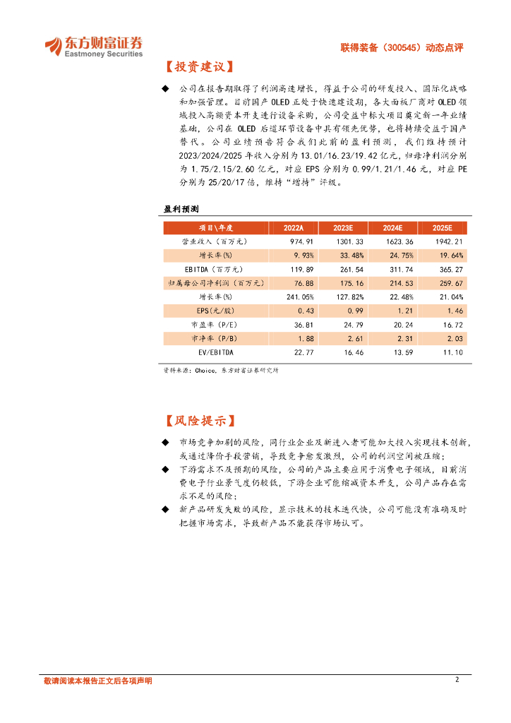东方财富证券:联得装备(300545)-动态点评:预告利润大幅增长,OLED国产设备领先者再中标大单.pdf