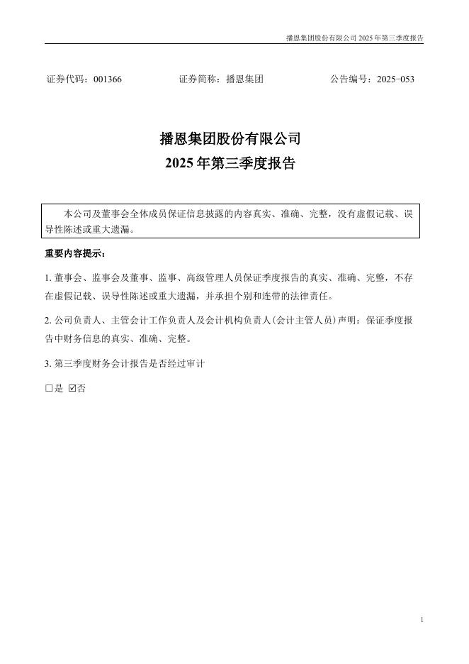001366-播恩集团:2025年三季度报告.pdf