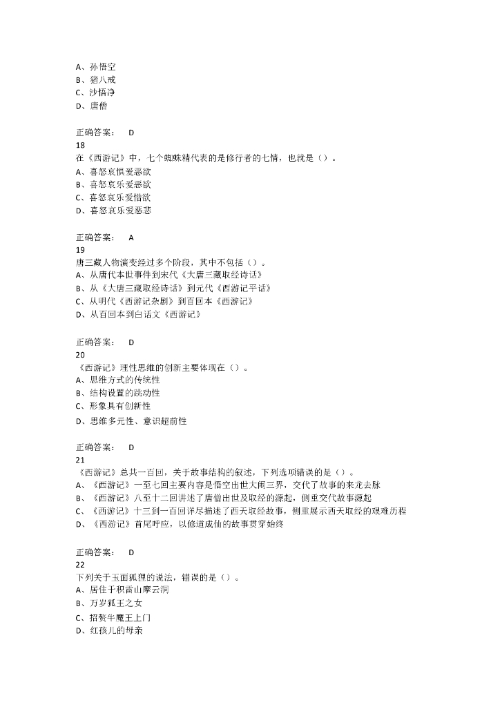 名著专项训练西游记竞赛试题及答案.doc