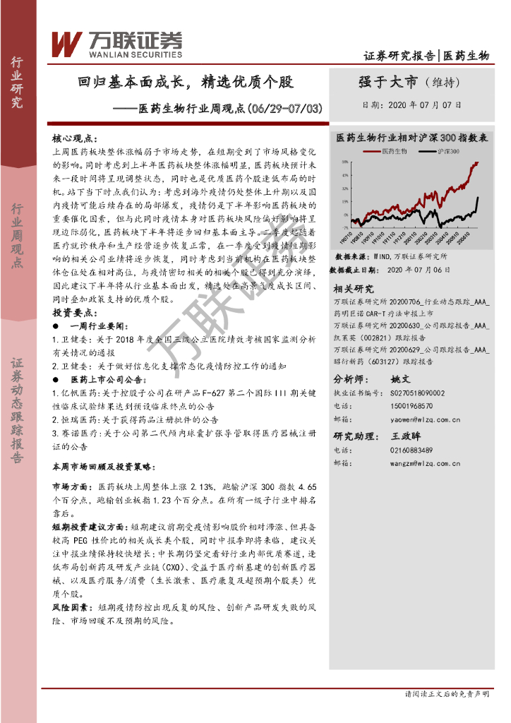 万联证券:医药生物行业周观点:回归基本面成长,精选优质个股.pdf