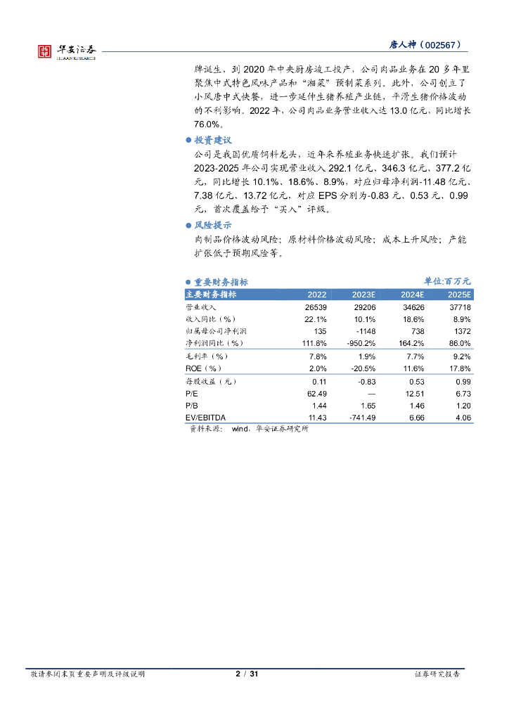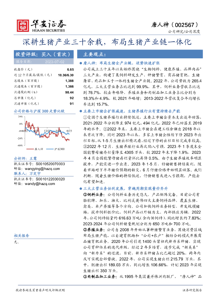 华安证券:唐人神(002567)-深耕生猪产业三十余载,布局生猪产业链一体化.pdf