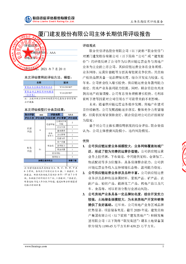 联合资信:厦门建发股份有限公司主体信用评级报告及跟踪评级安排.pdf