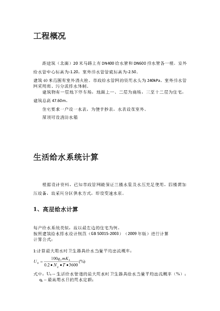 高层建筑给排水课程设计计算书.doc
