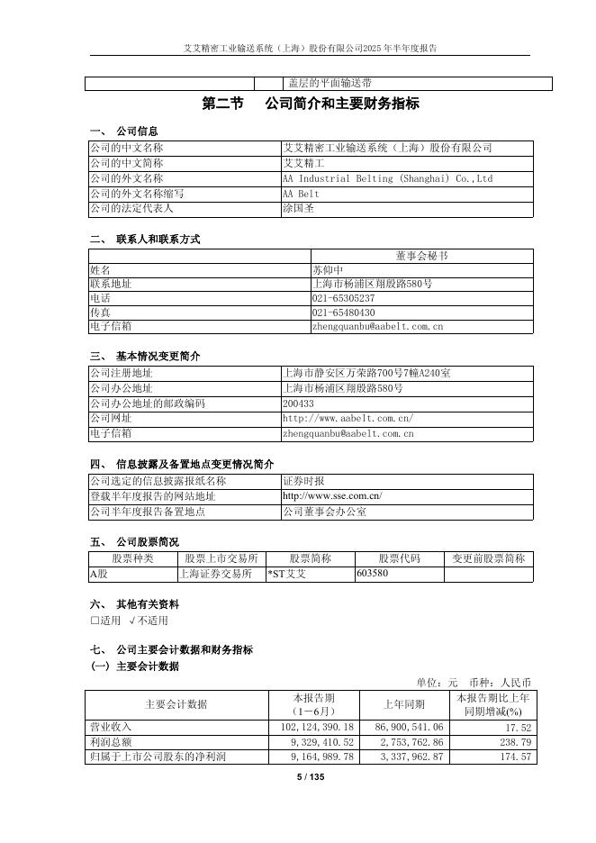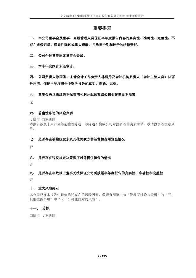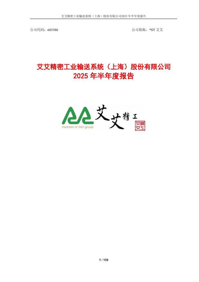 603580-*ST艾艾:艾艾精密工业输送系统(上海)股份有限公司2025年半年度报告.pdf