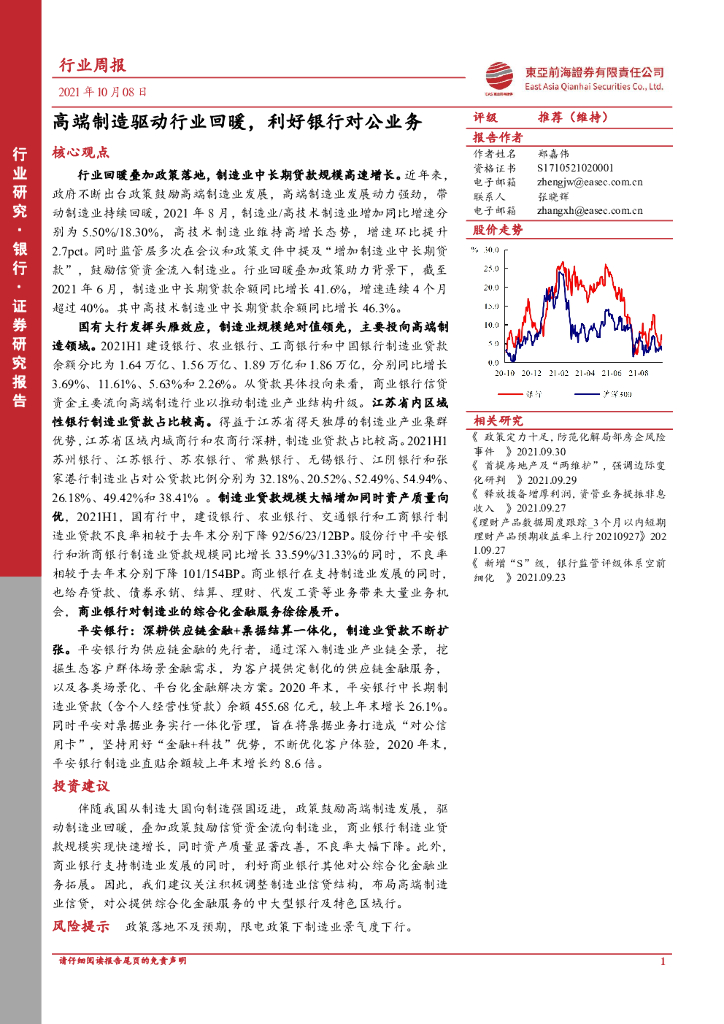 东亚前海证券:银行行业周报:高端制造驱动行业回暖,利好银行对公业务.pdf