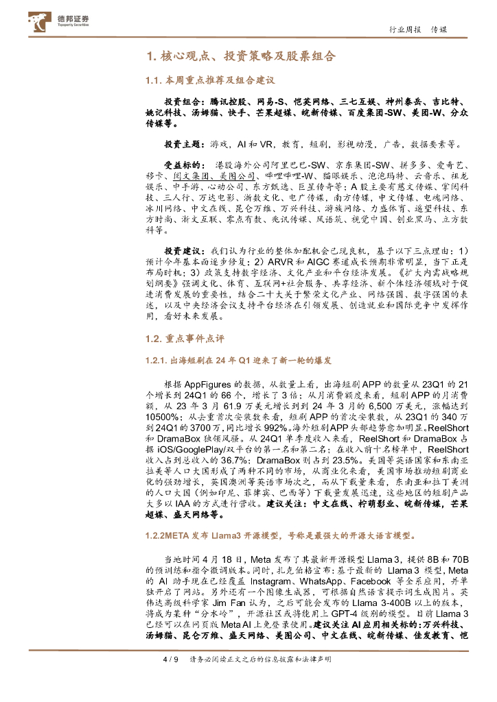德邦证券:传媒互联网行业周报:出海短剧在24年Q1迎来了新一轮的爆发,META发布Llama3开源模型.pdf