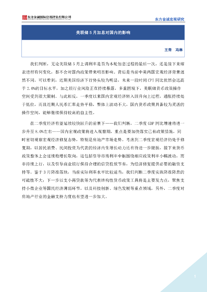 东方金诚:美联储5月加息对国内的影响.pdf