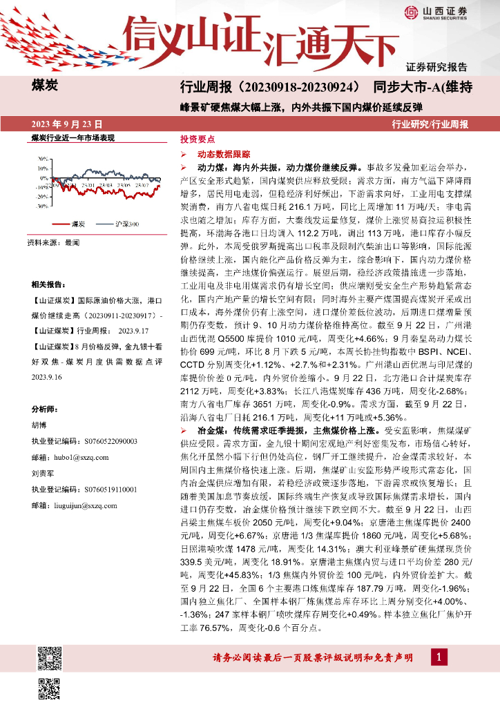 山西证券:煤炭行业周报:峰景矿硬焦煤大幅上涨,内外共振下国内煤价延续反弹.pdf