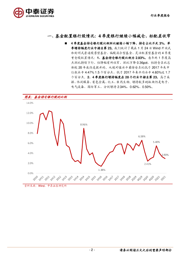 中泰证券:详解基金2021年银行股持仓:持仓占比2.93%,增持优质区域城农商行.pdf