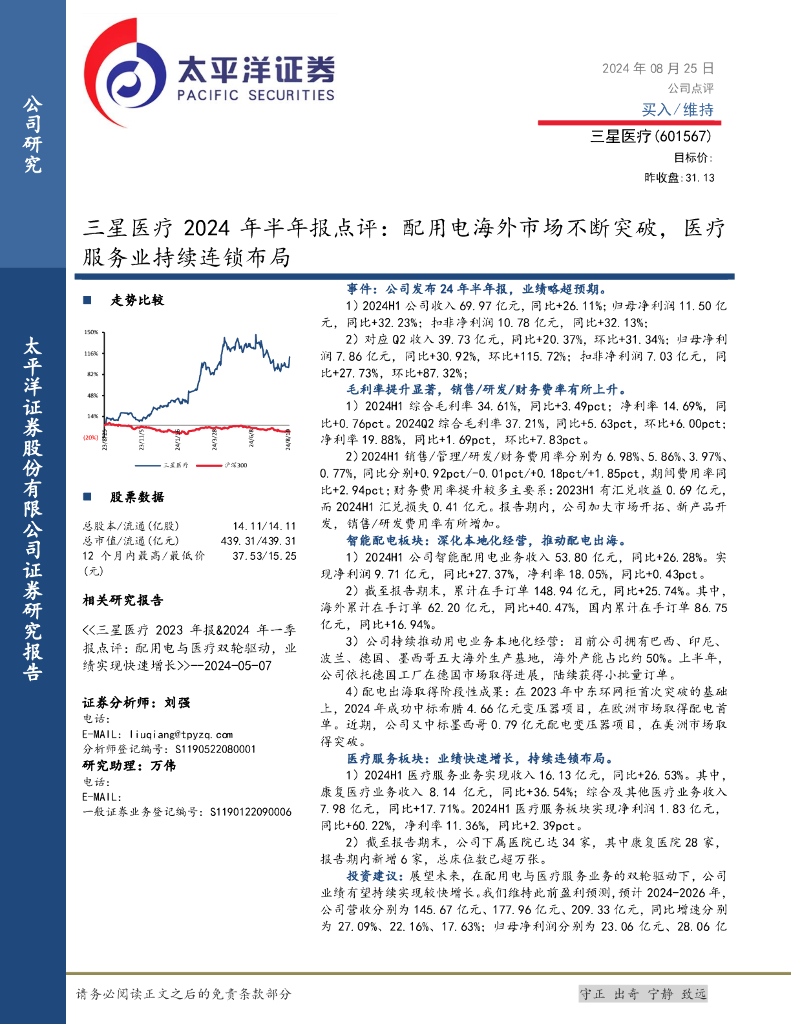 太平洋证券:三星医疗2024年半年报点评:配用电海外市场不断突破,医疗服务业持续连锁布局.pdf