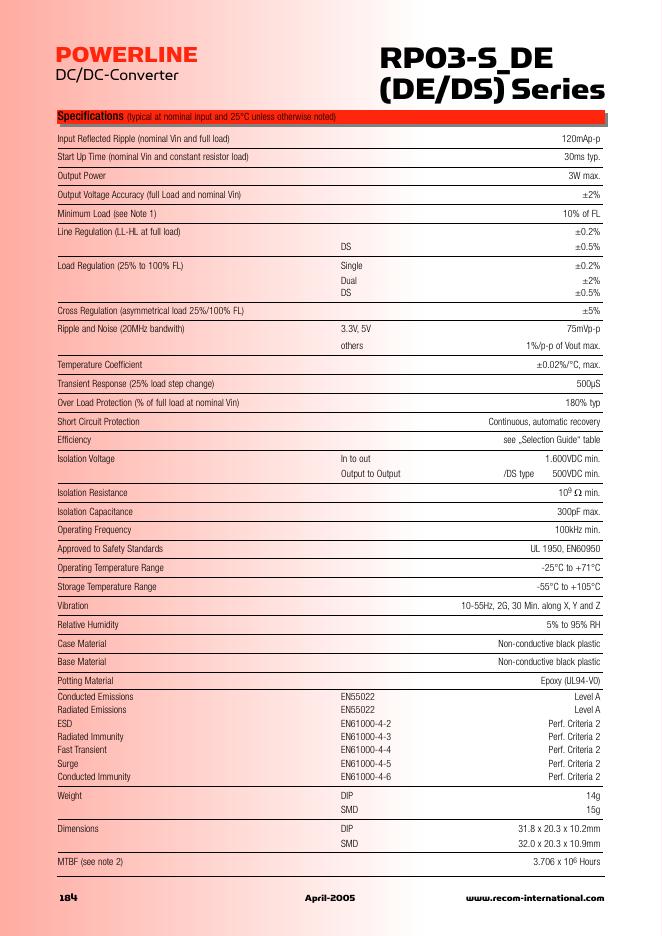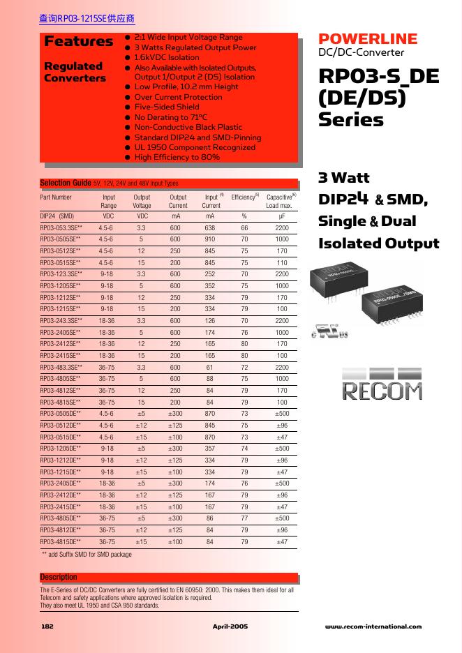 RECOM RP03-S_DE (DE/DS) Series 数据手册.pdf