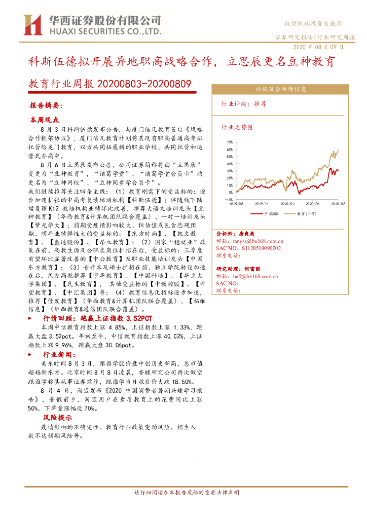 华西证券:教育行业周报:科斯伍德拟开展异地职高战略合作,立思辰更名豆神教育.pdf