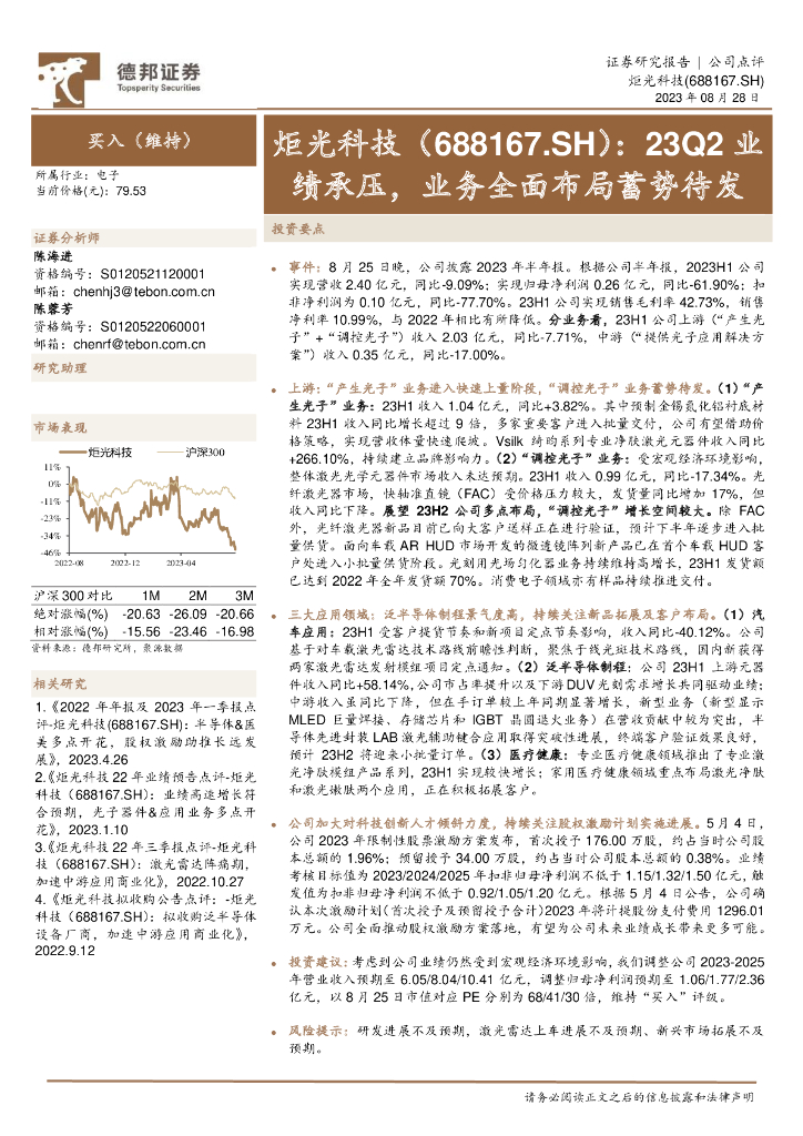 德邦证券:炬光科技(688167)-23Q2业绩承压,业务全面布局蓄势待发.pdf