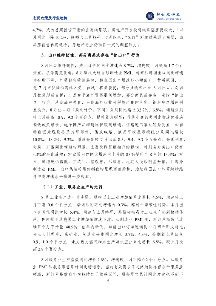 新世纪评级:经济数据普遍走弱 货币政策支持力度加大——2024年8月宏观和行业运行简析报告.pdf