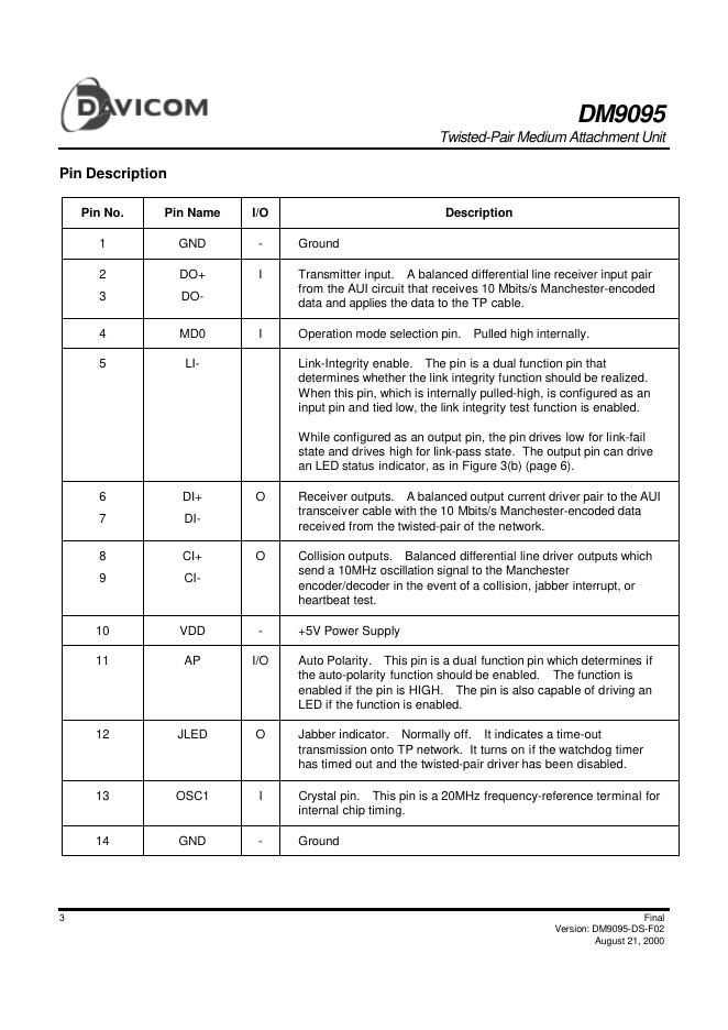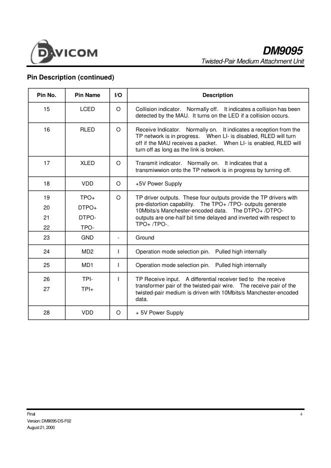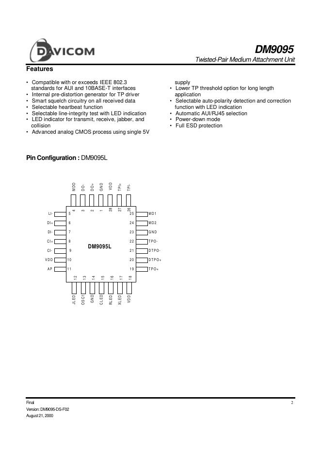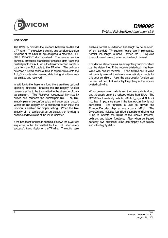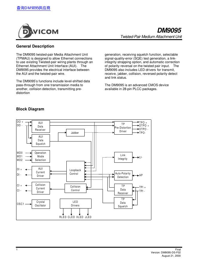 DAVICOM DM9095 数据手册.pdf