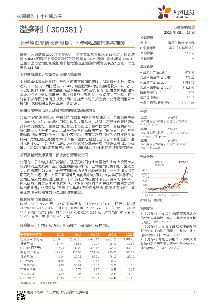 天风证券:溢多利(300381)-上半年扣非增长超预期,下半年业绩有望再加速.pdf