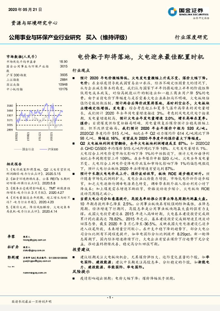国金证券:公用事业与环保产业行业研究:电价靴子即将落地,火电迎来最佳配置时机.pdf