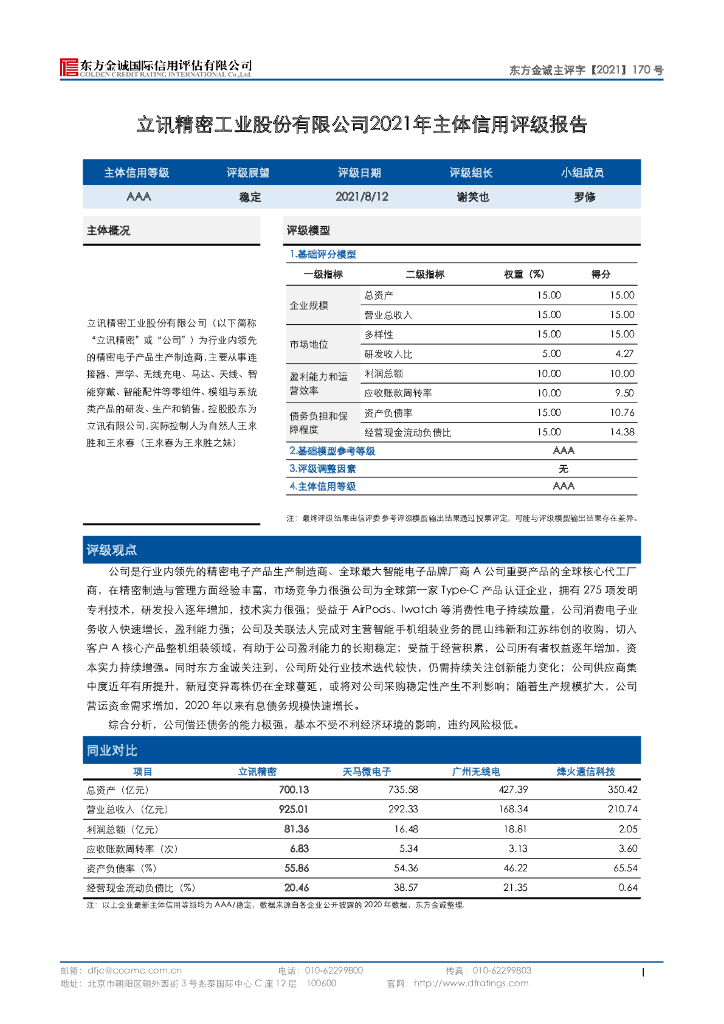 东方金诚:立讯精密工业股份有限公司2021年度主体信用评级报告.pdf