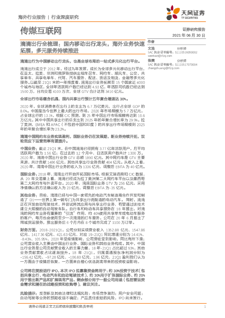 天风证券:滴滴出行全梳理:国内移动出行龙头,海外业务快速拓展,多元服务持续推进.pdf