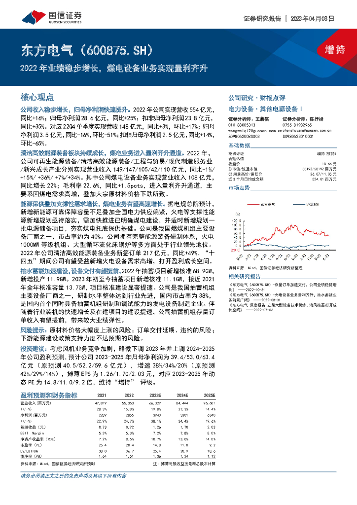 国信证券:东方电气(600875)-2022年业绩稳步增长,煤电设备业务实现量利齐升.pdf