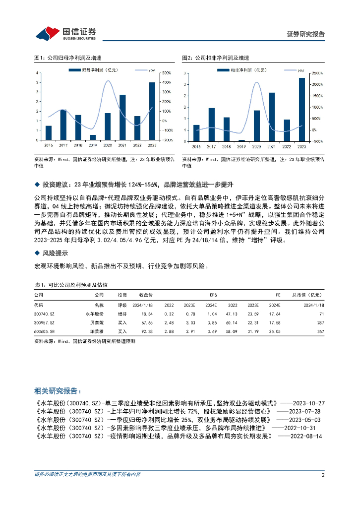 国信证券:水羊股份(300740)-2023年业绩预告增长124%-156%,品牌运营效益进一步提升.pdf