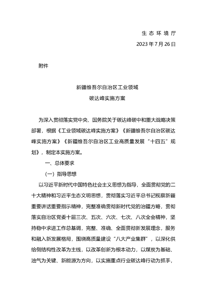 新疆维吾尔自治区工业领域碳达峰实施方案.doc