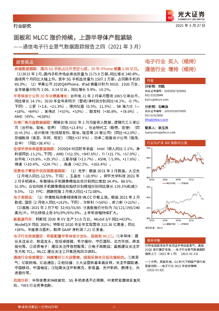 光大证券:通信电子行业景气数据跟踪报告之四(2021年3月):面板和MLCC涨价持续,上游半导体产能紧缺.pdf