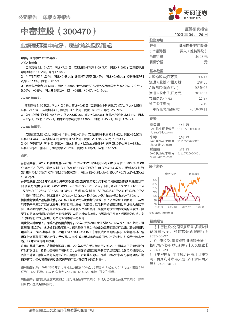天风证券:中密控股(300470)-业绩表现稳中向好,密封龙头迎风而起.pdf