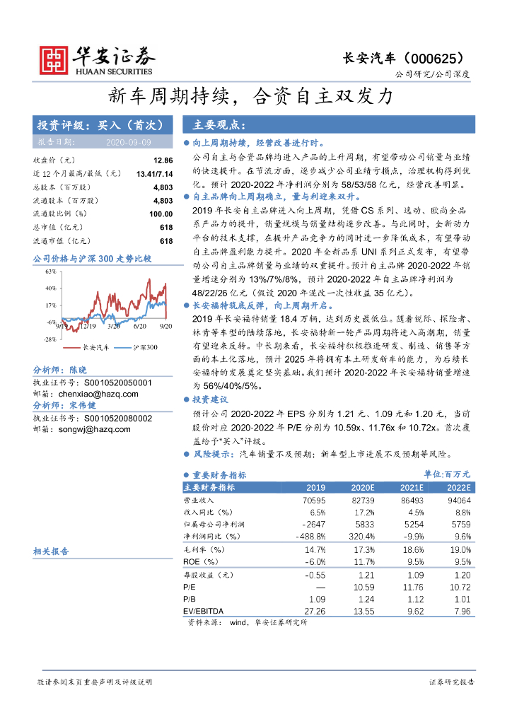 华安证券:长安汽车(000625)-新车周期持续,合资自主双发力.pdf