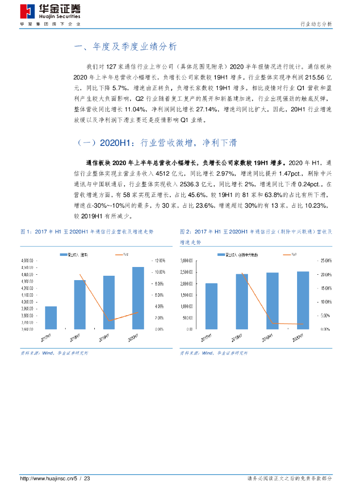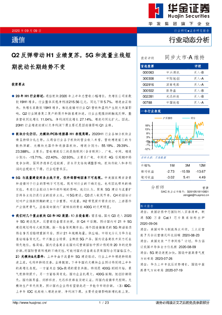 华金证券:通信行业动态分析:Q2反弹带动H1业绩复苏,5G和流量主线短期扰动长期趋势不变.pdf