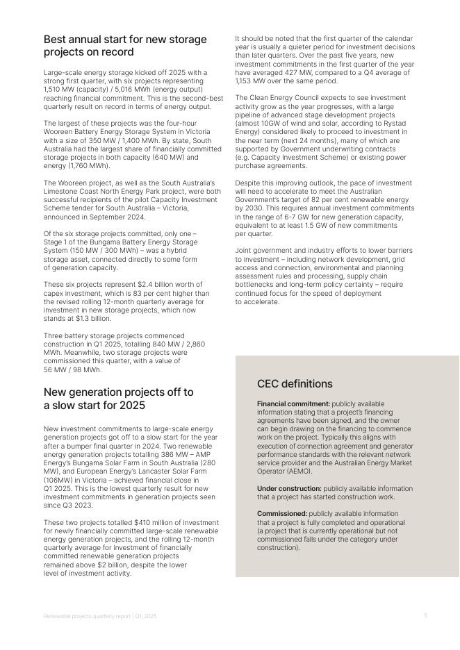 CEC:2025年第一季度澳大利亚大规模可再生能源发电与储能项目投资报告(英文版).pdf