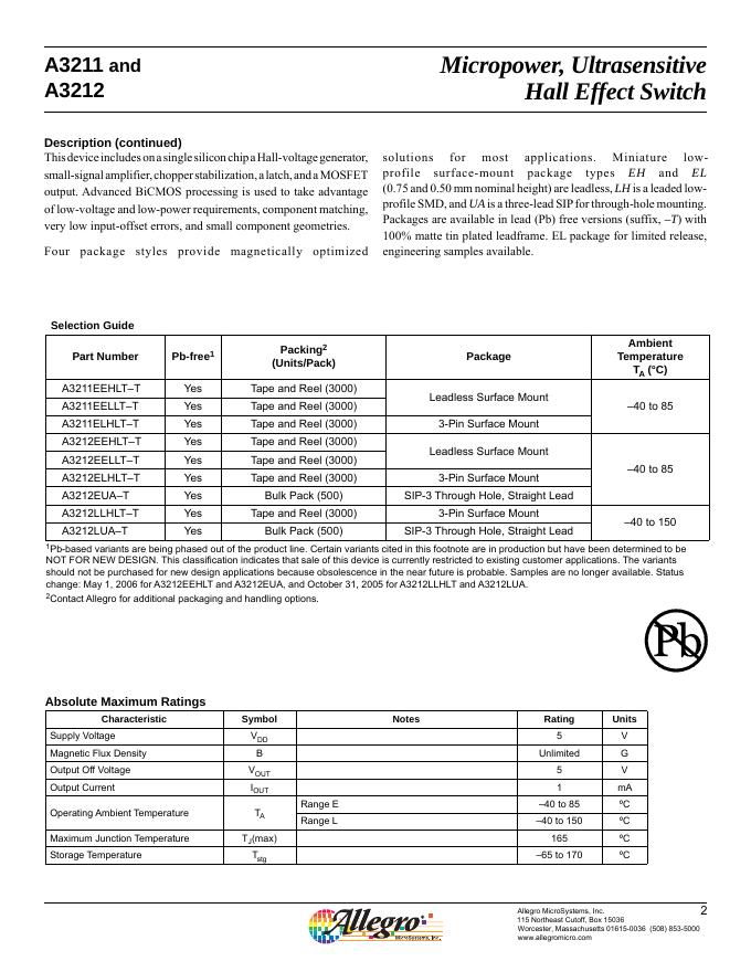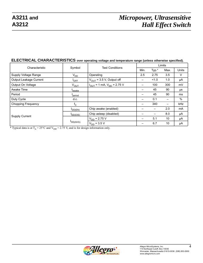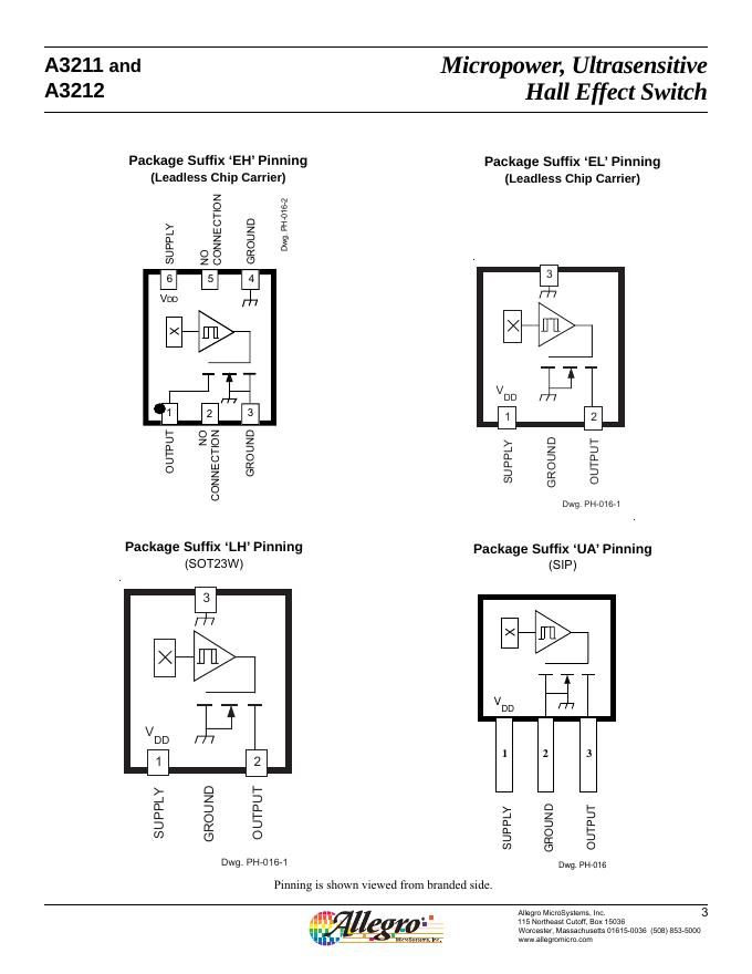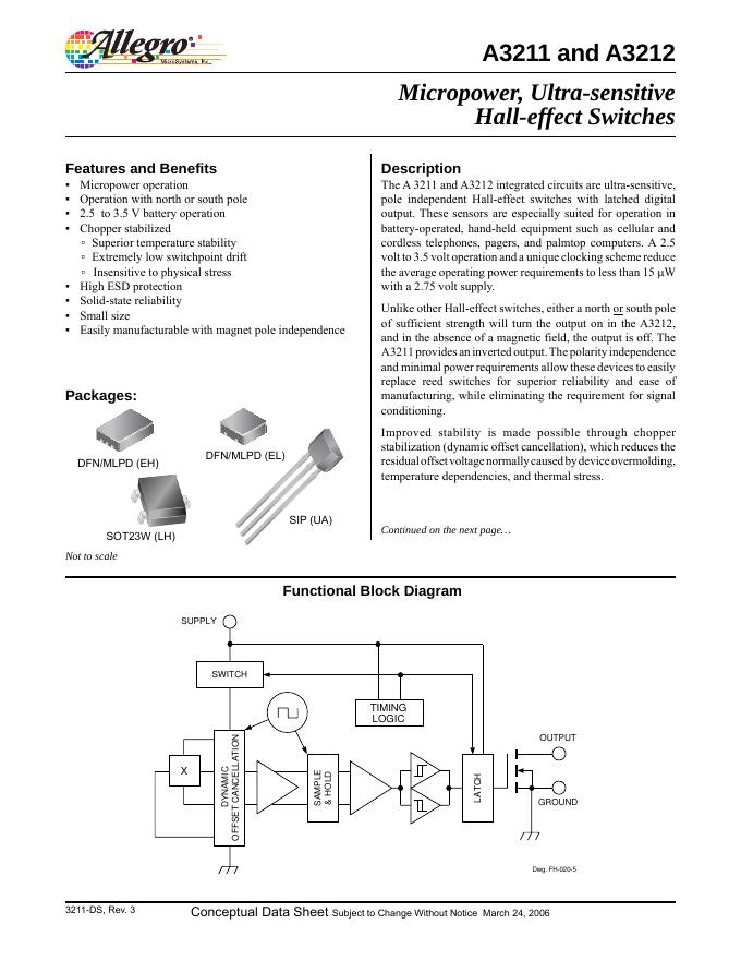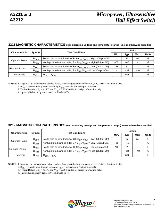 ALLEGRO A3211 and A3212 Micropower, Ultra-sensitive Hall-ef fect Switches 数据手册.pdf