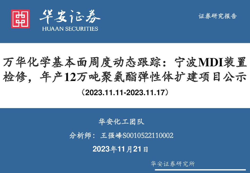 华安证券:化工:万华化学基本面周度动态跟踪:宁波MDI装置检修,年产12万吨聚氨酯弹性体扩建项目公示.pdf