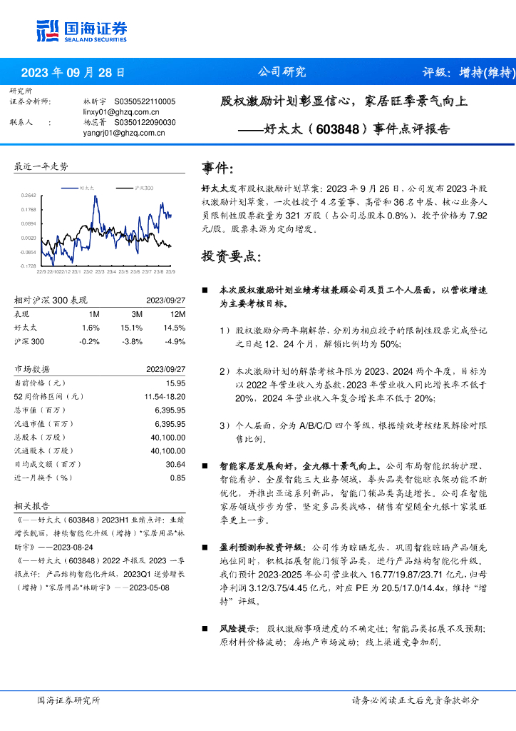 国海证券:好太太(603848)-事件点评报告:股权激励计划彰显信心,家居旺季景气向上.pdf