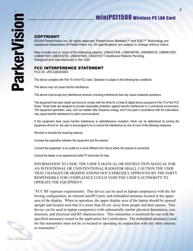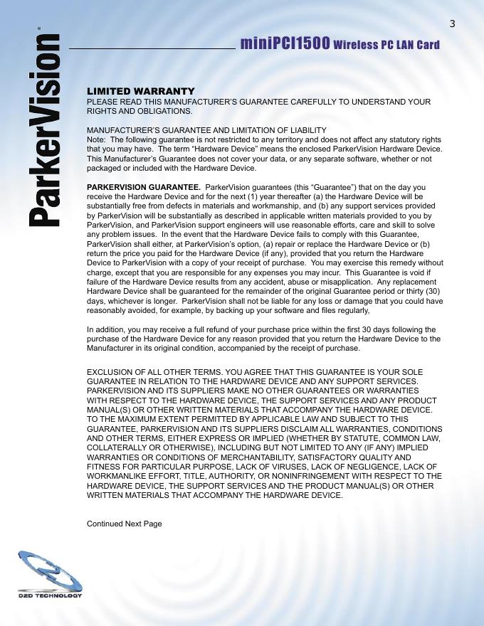 ParkerVision ® SIGNAL MAX 2 miniPCI1500无线PC网卡用户手册.pdf