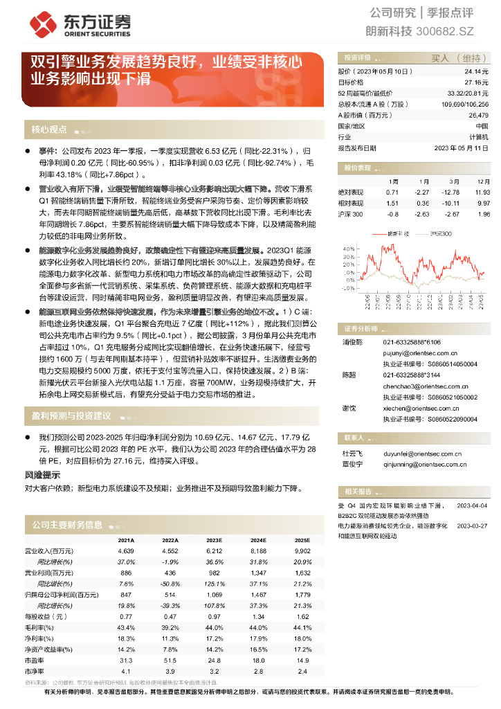 东方证券:朗新科技(300682)-双引擎业务发展趋势良好,业绩受非核心 业务影响出现下滑.pdf