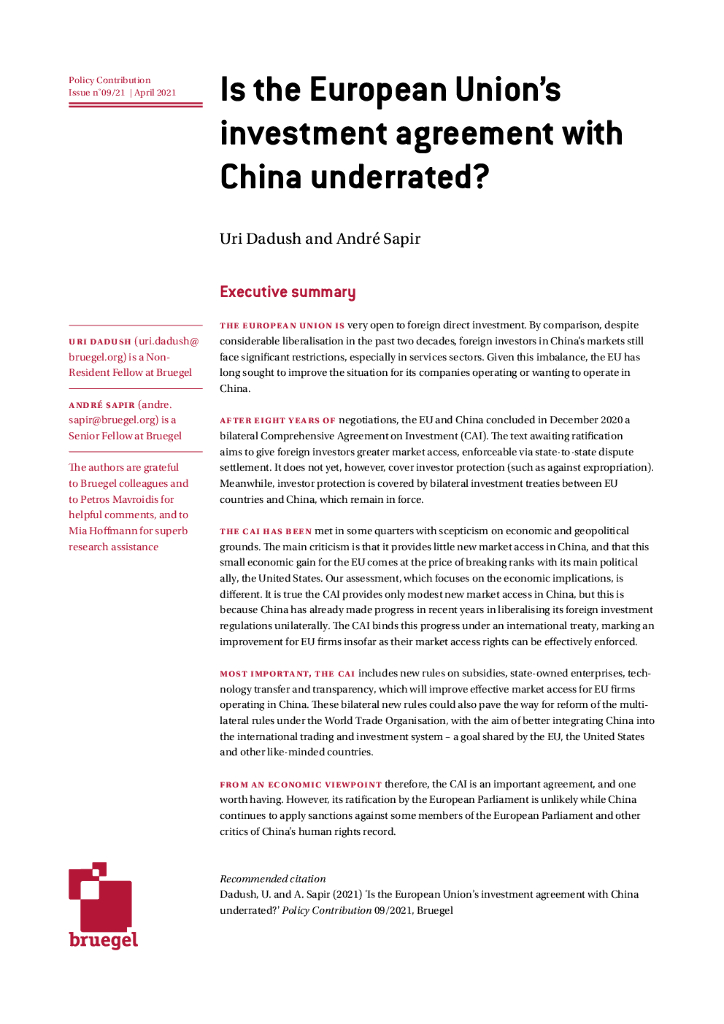 布鲁盖尔研究所:欧盟与中国的投资协议被低估了吗?(英文版).pdf