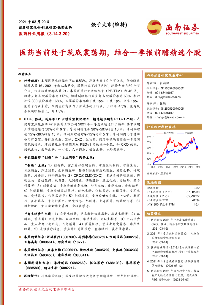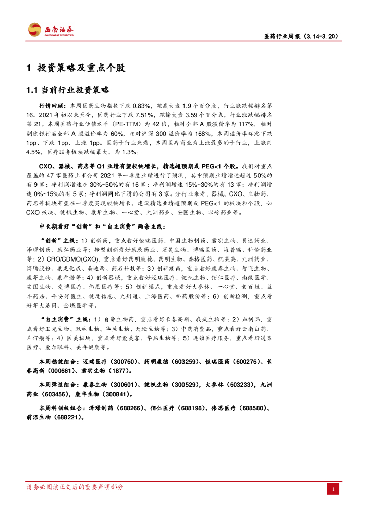 西南证券:医药行业周报:医药当前处于筑底震荡期,结合一季报前瞻精选个股.pdf