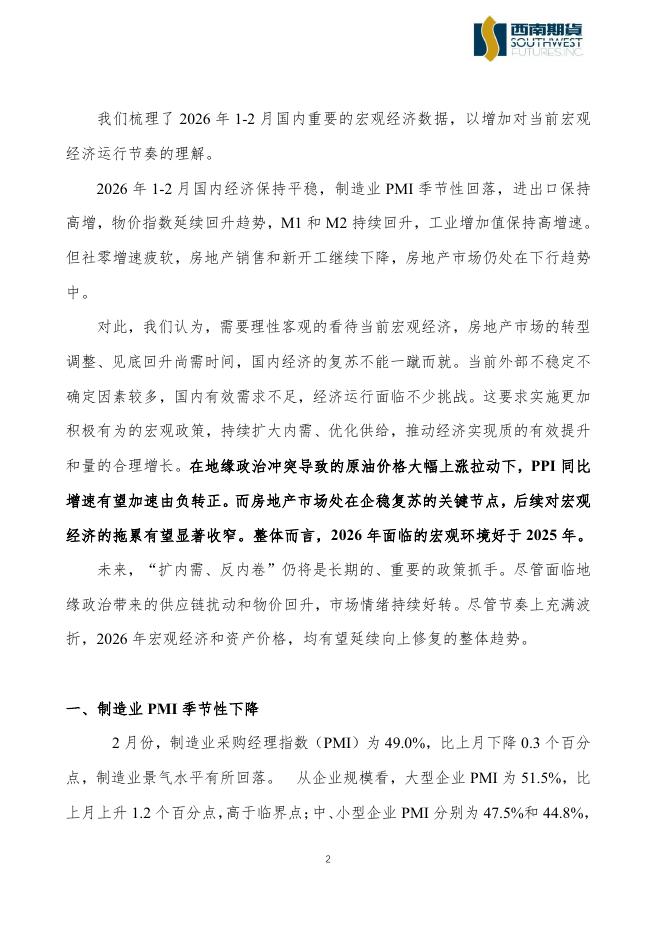 西南期货:2026年1-2月宏观数据分析:宏观经济保持平稳,物价指数延续回升-260317.pdf