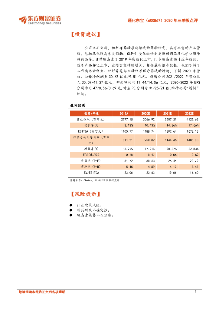 东方财富证券:通化东宝(600867)-2020年三季报点评:Q3业绩提速显著,甘精胰岛素持续放量.pdf