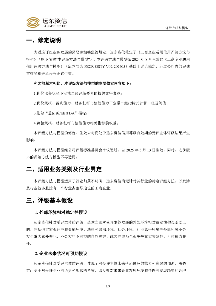 远东资信:工商企业通用信用评级方法与模型(FECR-GSTY-V03-202503).pdf