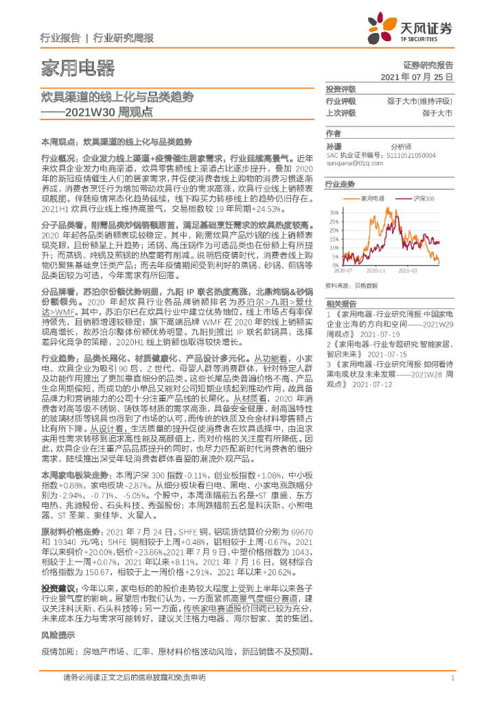 天风证券:家用电器周观点:炊具渠道的线上化与品类趋势.pdf