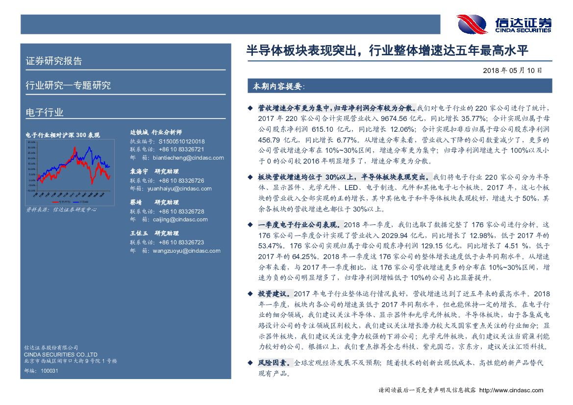 信达证券:电子行业:半导体板块表现突出,行业整体增速达近五年最高水平.pdf