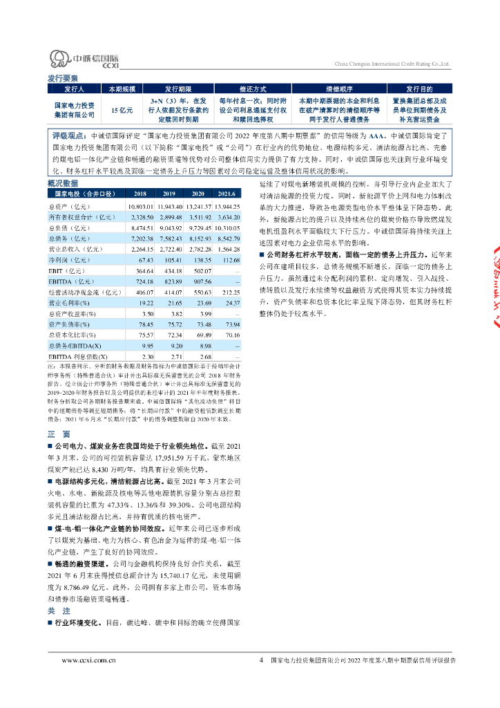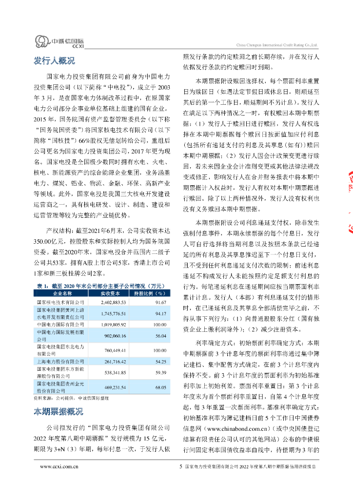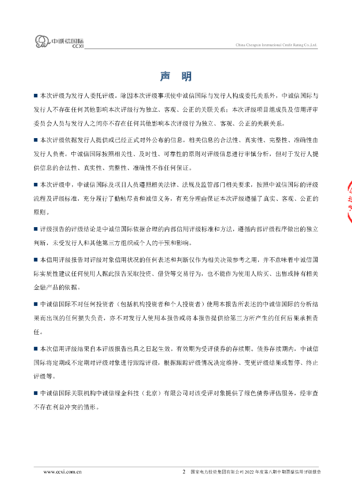中诚信:国家电力投资集团有限公司2022年度第八期中期票据信用评级报告.pdf